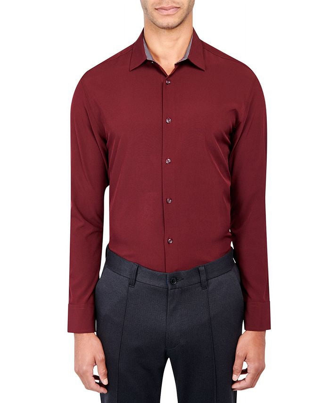 Construct Burgundy Men S Slim Fit Performance Dress Shirt M 15 15 5 33 34 Walmart Com